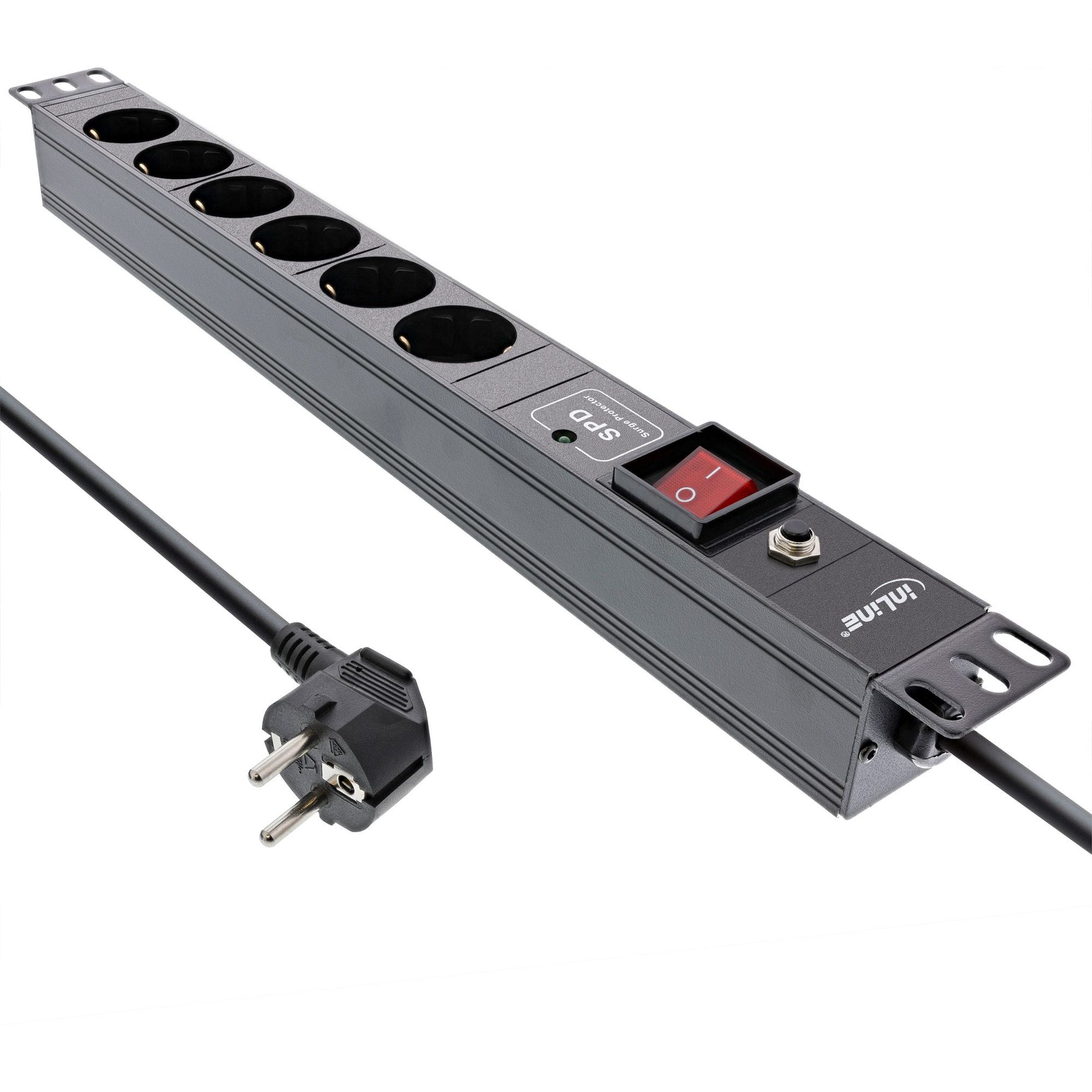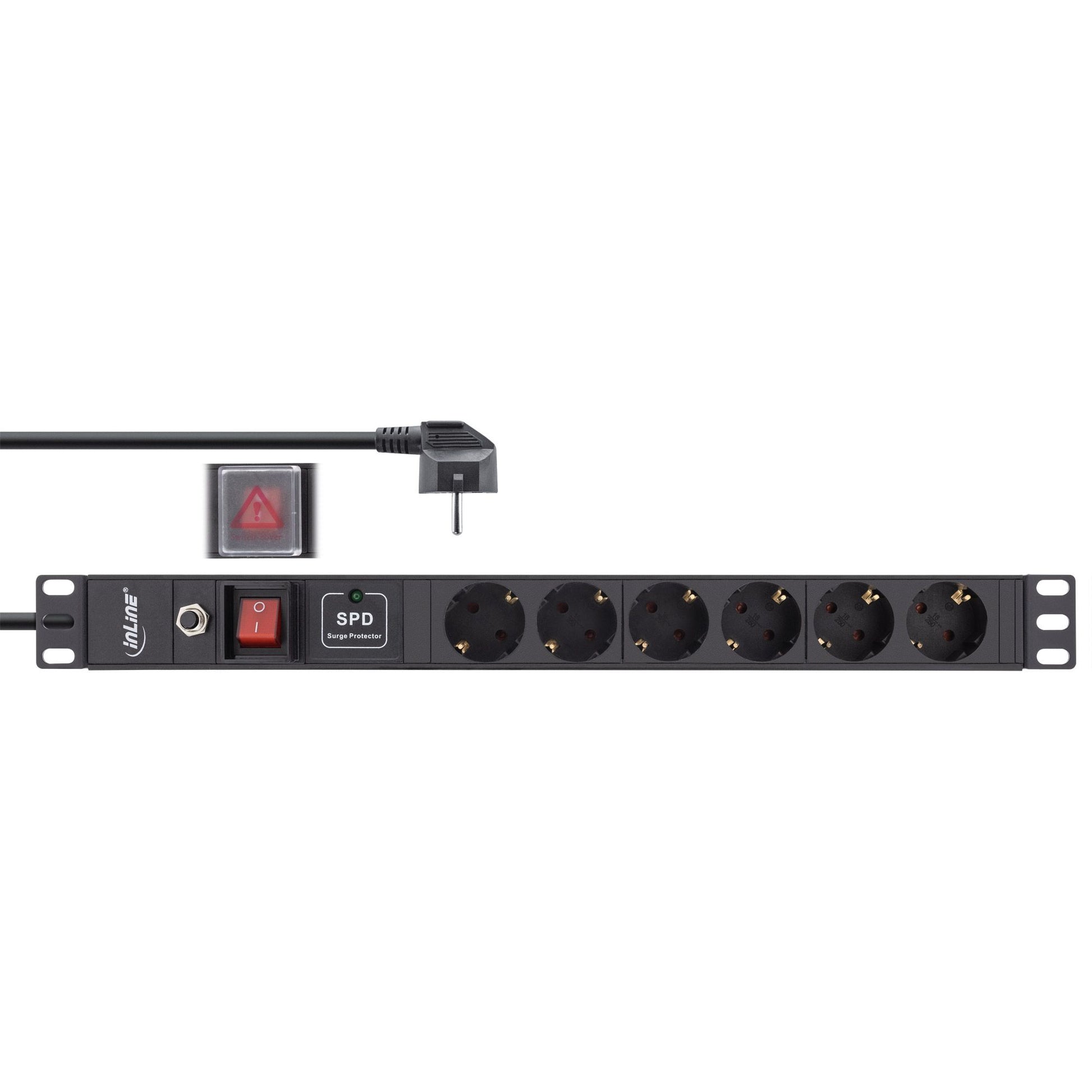 Die InLine® 19" Steckdosenleiste mit 6 Schutzkontakt-Steckdosen ist die ideale Lösung für eine zuverlässige Stromversorgung in Server-, Netzwerk- und IT-Racks. Dank 1HE-Bauhöhe lässt sie sich platzsparend im 19"-Netzwerkschrank montieren.