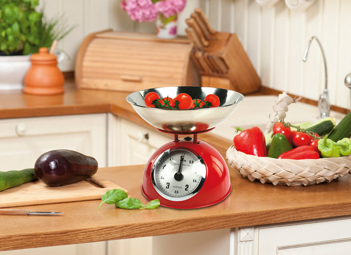 Retro Küchenwaage Rot Analog Edelstahlschüssel Mechanisch Kochen Backen